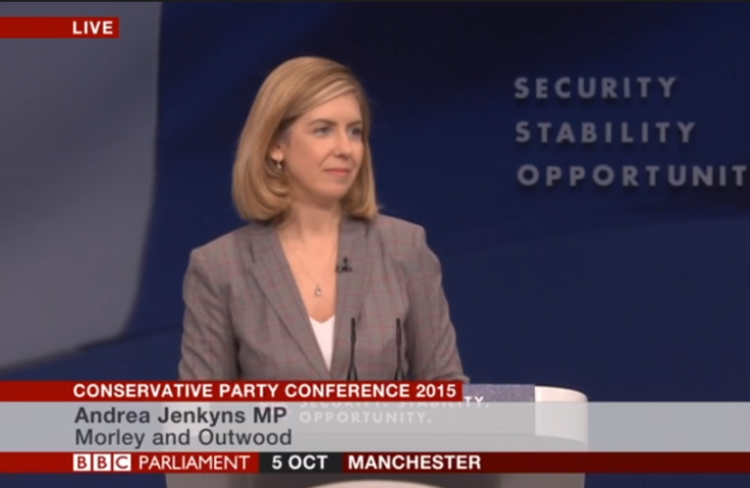 Andrea took centre stage at this week’s Conservative Party Conference introducing the Chancellor of the Exchequer, George Osborne.