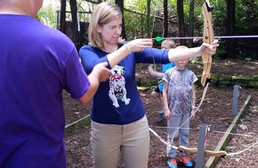 Morley MP Andrea Jenkyns visited local cubs and beavers at the annual camp in Morley. The 4th Gildersome Cub Pack and Beaver Colony, both junior branches of the Scouting movement, held their annual camp at the Phoenix District Scout Camp Site on Nepshaw Lane, Morley. Andrea called in to visit the Cubs, Beavers, and their leaders on Saturday afternoon, taking the opportunity to join in their activities and learn about their organisation in our area. The South Leeds and Morley Scouting District, which includes the Cubs and Beavers from Gildersome, is made up of over 650 young people and more than 100 adult volunteers. The Scouting movement provides a wide variety of outdoor and indoor activities for young people, from the age of six to eighteen; with a strong focus on personal development, responsibility and leadership. Andrea said "It was fantastic to meet members of Gildersome Cubs and Beavers, the young people and their leaders made me feel very welcome. They let me join in their crafts and outdoor activities, though it will take a bit of practice before I can beat the Cubs on the archery range. The work that leaders like Anna and Chris do to make it all happen is unbelievable. They are all volunteers and they do so much to develop and look after the young people who join, they are truly an asset to our community." The 4th Gildersome Cub Pack and Beaver Colony, both junior branches of the Scouting movement, held their annual camp at the Phoenix District Scout Camp Site on Nepshaw Lane, Morley. Andrea called in to visit the Cubs, Beavers, and their leaders on Saturday afternoon, taking the opportunity to join in their activities and learn about their organisation in our area. The South Leeds and Morley Scouting District, which includes the Cubs and Beavers from Gildersome, is made up of over 650 young people and more than 100 adult volunteers. The Scouting movement provides a wide variety of outdoor and indoor activities for young people, from the age of six to eighteen; with a strong focus on personal development, responsibility and leadership. Andrea said "It was fantastic to meet members of Gildersome Cubs and Beavers, the young people and their leaders made me feel very welcome. They let me join in their crafts and outdoor activities, though it will take a bit of practice before I can beat the Cubs on the archery range. The work that leaders like Anna and Chris do to make it all happen is unbelievable. They are all volunteers and they do so much to develop and look after the young people who join, they are truly an asset to our community."
