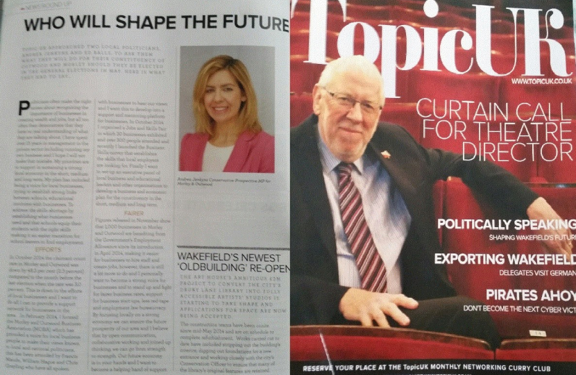 Figures released in November show that 1,000 businesses in Morley and Outwood are benefitting from the Government’s Employment Allowance since its introduction in April 2014, making it easier for businesses to hire staff and create jobs, however, there is still a lot more to do and I personally want to become a strong voice for businesses locally and to stand up and see further support regarding business rates, for business start-ups, less red-tape and employment law bureaucracy. By focusing locally on a strong economy we can ensure the future prosperity of our area and I believe that by open communication, collaborative working and joined-up thinking, we can go from strength to strength.