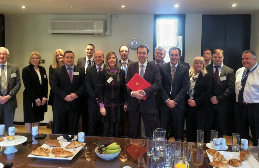 Today we had out 10th MOBA Morley & Outwood Business Association Meeting. Representatives of local businesses, small and large, met with senior Business Minister Matthew Hancock MP of breakfast to discuss a wide range of economic issues. The meeting, hosted by document management specialists Arena Group at their office in Robin Hood, was organised by Conservative Parliamentary Candidate Andrea Jenkyns and MOBA- Morley and Outwood Business Association.Mr Hancock, who is Minister of State at the Department of Business, Innovation and Skills, and the Minister of State for Energy, first addressed the meeting, talking of how well Yorkshire’s economy is doing. He then took questions from attendees on topics ranging from support for small business to local government procurement. Businesses that attended include; Associated Waste Management, Spawforths, Natwest, Emphasis Creative Agency and the CBI-Confederation of British Industry.