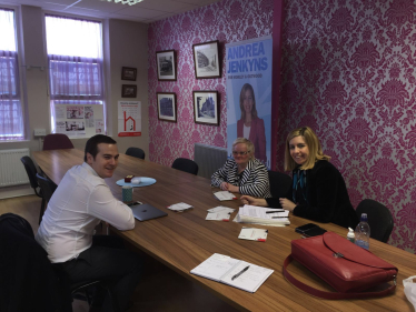 Andrea shadowed by LEEP1 Chief Executive Susan Hanley 12th February 2016 Andrea was joined in her constiuency by learning disability campaigner Susan Hanley. Local NewsArticles