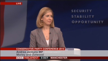 Andrea takes centre stage at Conference 5th October 2015 The Chancellor invited Andrea to introduce him on stage at this year's Conservative Party Conference. Westminster NewsArticles