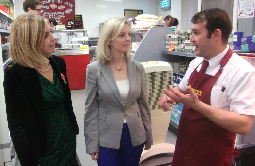 The Food Minister Elizabeth Truss visited businesses on Morley High Street to see the best of local and British produce. Elizabeth, who grew up in Leeds and is the Secretary of State for the Environment, Food and Rural Affairs, visited Morrisons, Bennetts Butchers and Mi’ Mam’s Food Company. She was accompanied on her visit by local Conservative parliamentary candidate Andrea Jenkyns.