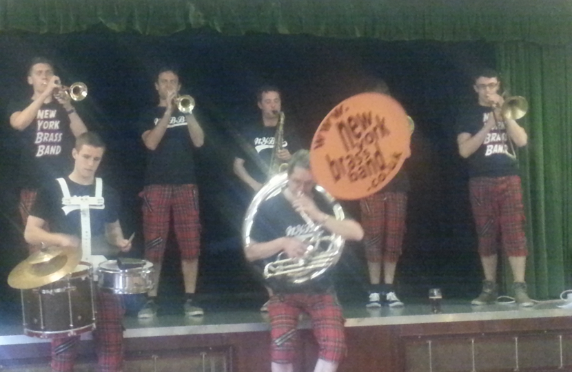Then followed the ‘New York Brass Band’ who are sponsored by the Arts Council; are playing at Glastonbury this year, and am told at one of the members of Mc Fly’s wedding. They were so energetic, original and I am sure it won’t be long until someone signs them up. They are ‘New Orleans inspired music from the mean streets of York, North Yorkshire, UK’, and the The Guardian newspaper reviewed them and stated that they are, “A must-see, stomping genre-splicing brass outfit.” They all sing, dance as well as play beautifully.